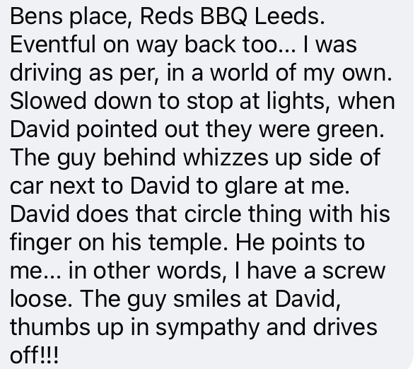 We went in different directions to try get help, explaining to people what had happened. I was getting nowhere and went back to Julie who was crying with laughing.
